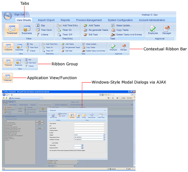 Microsoft Office Style Web Timesheet Interface |