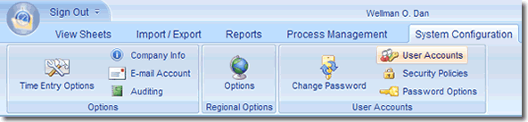 User Account management from within the Office Timesheets System Configuration tab